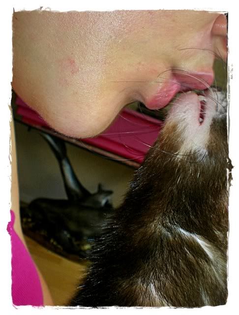 Emma  :love: er søster til Klara, men de ligner ikke hinanden så meget mere ,som da jeg lige fik dem. Emma er den lille søde der nok er den af pigerne der har knyttet sig mest til mig. Hun kan godt lide at løbe rundt i sofaen når jeg sidder der. Hun bider mig faktisk aldrig , heller ikke i leg. Jeg har faktisk kun haft meget få opdragelses oplevelser med dem alle sammen.. Ca en uge eller 2 så var de færdig med at bide og provokere.