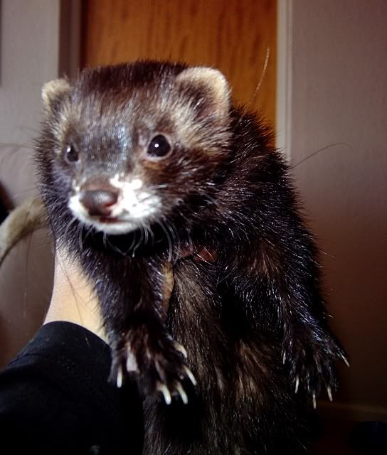 Min nye hvide Ilder.. forvanlings ilder.. sort uden hale om Sommern , Og hvid og med hvid hale om Vinteren.. Den var sort sidste år, men det må være ny mode med hvid hale i år.. Fiona Krystal <3