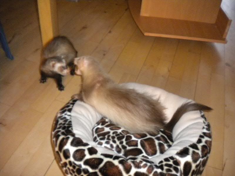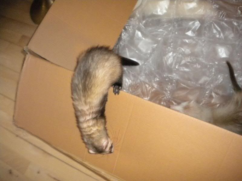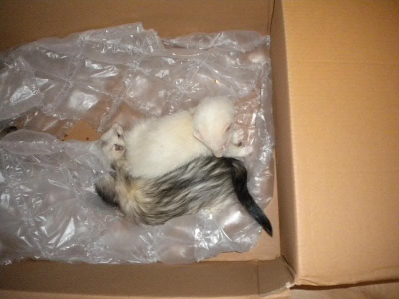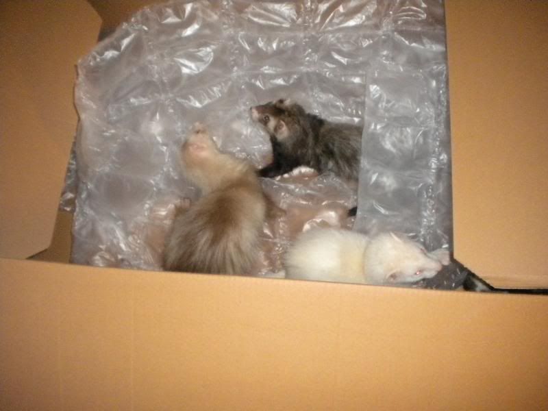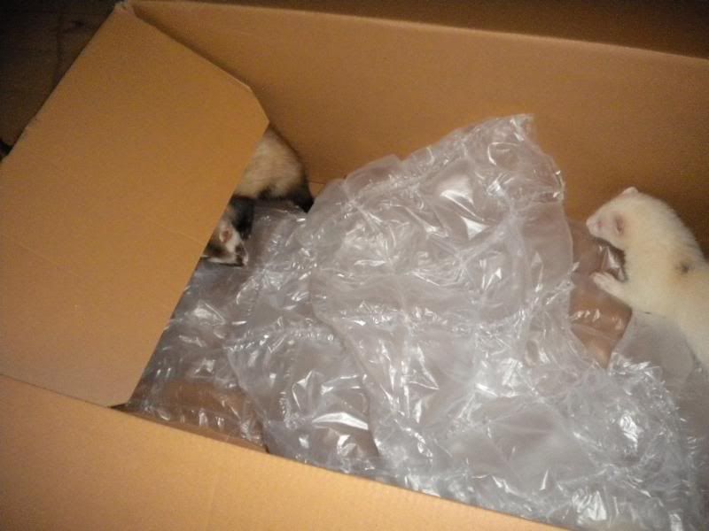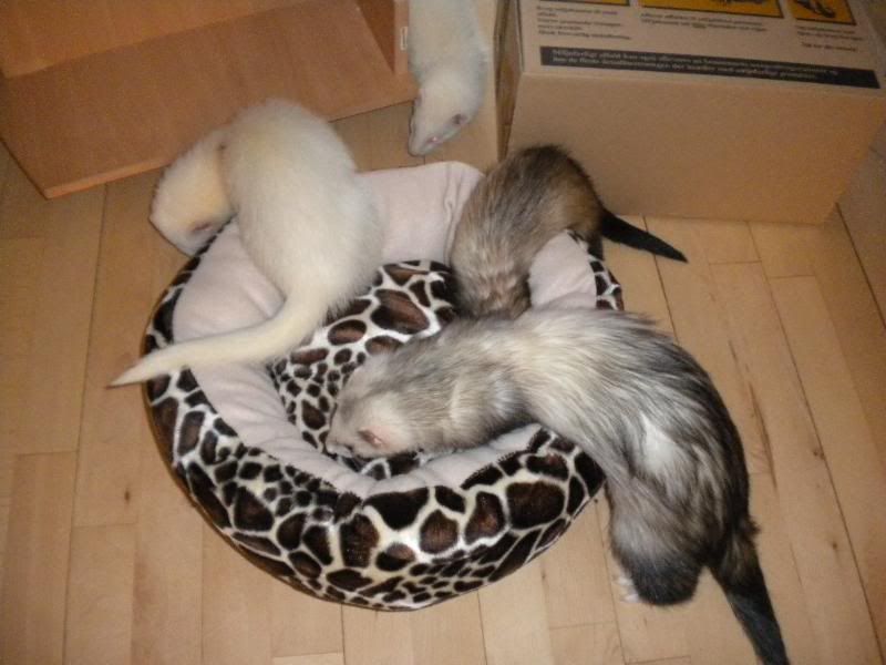 Ja de hyggede sig rigtig med både kasse og seng  :fnis:
