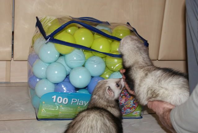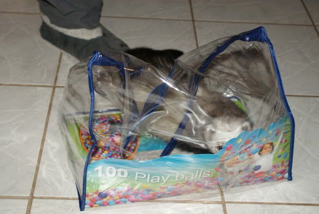 De ser godt nok ud til at hygge sig :) Jeg har også tænkt at mine dyr skulle have sådan en pose med bolde