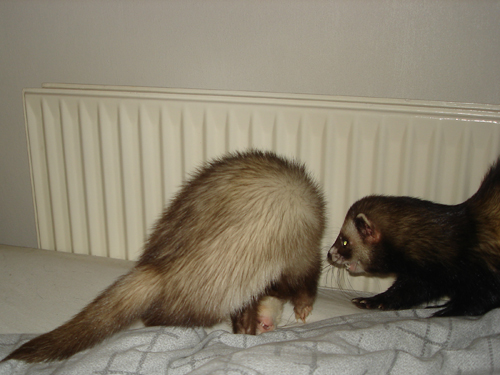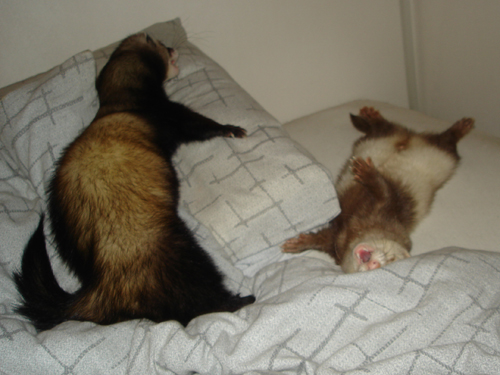 Ih hvor er de bare søde i den seng, jeg er vild med billeder af ilder der har det rigtig sjovt.