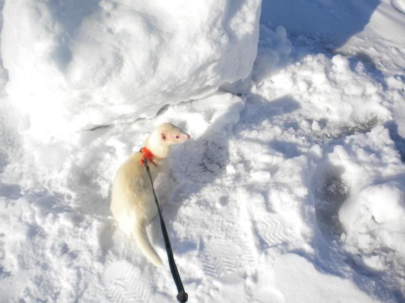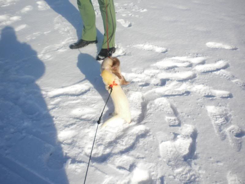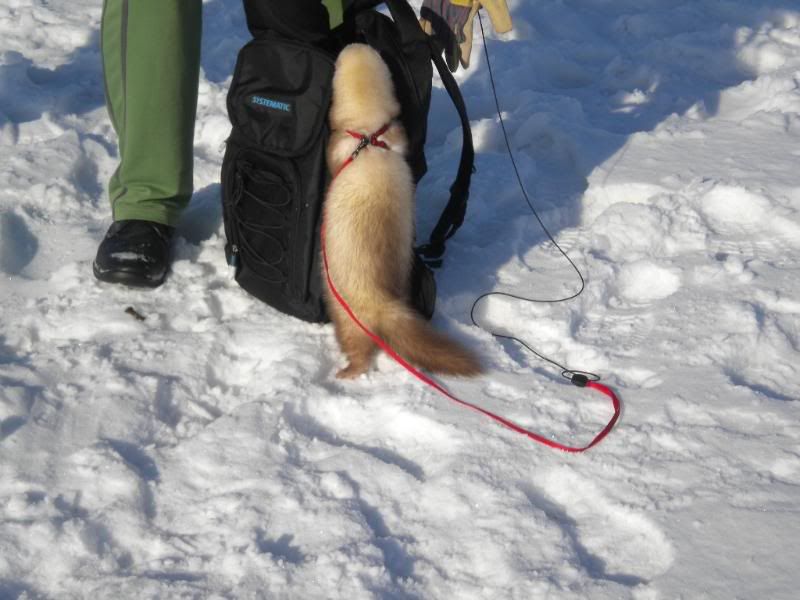 Jeg ved ikke hvor meget hun nød det  :fnis: jeg tror hun frøs det meste af tiden for hun kravlede ind under min jakke hele tiden. Det skal lige siges at vi ikke var ude mere end 10 min for det er pisse koldt i dag selvom solen skinner
