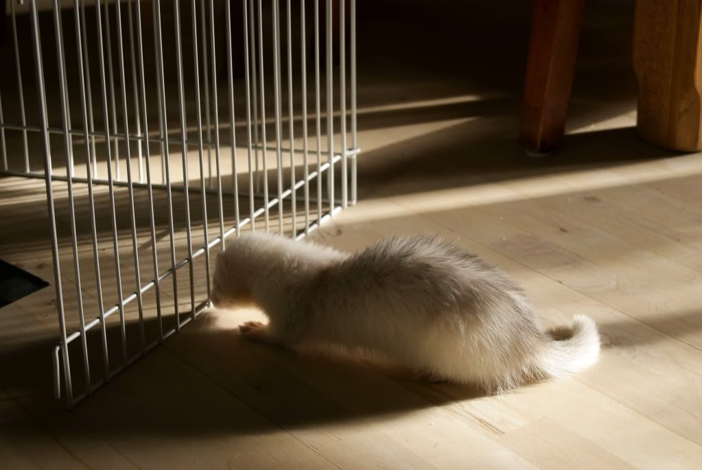 Rufus viser benny hvordan man kommer rundt i buret