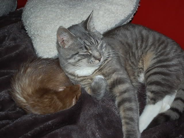Her først lige Maleika og Teddy der forleden tog sig en skraver sammen på sofaen, det er usædvanligt at se dem sammen, da Maleika faktisk ikke tager sig af om Teddy er der eller ej. Hun er ret ligeglad med ham. :roll: