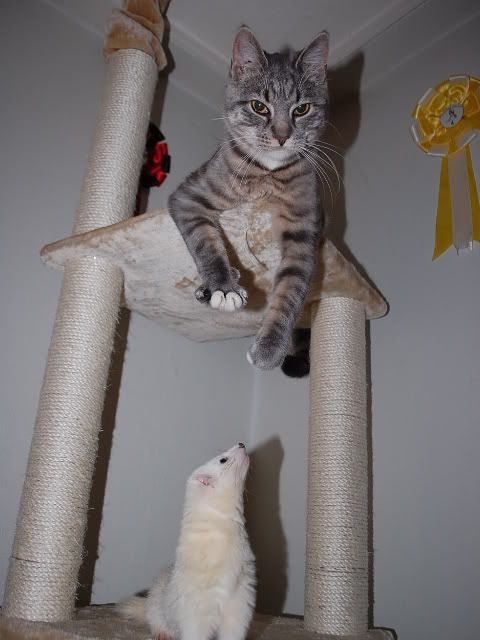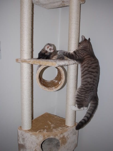 Jeg er vild med det billede hvor Teddy kigger ned på Zallie oppe fra kradsetræet. Super søde og smukke dyr!!!