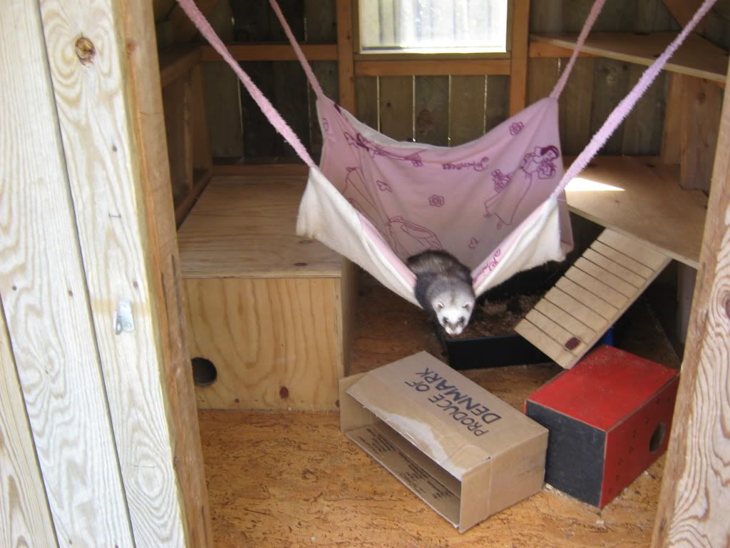 The ferret House. indvændig. Deres Kæmpe hængekøje, som Pheobe elsker. redekassen