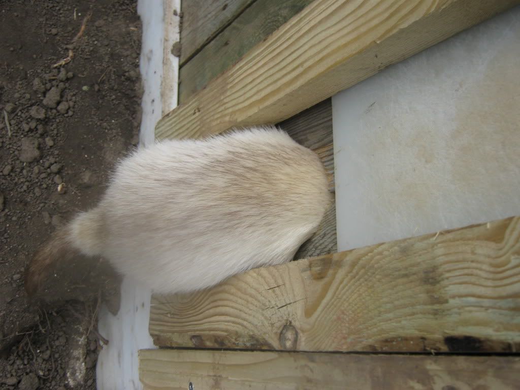 Billled af ude arealet ser lidt skrøbeligt ud, men det er bygge sådan at de har ingen ting at krave op af, da siderne er alt for høje, og bunden er dækket med mursten, så de kun kan grave de der 20-40 cm. Nettet er der for at holde fugle og andre dyr væk, og det er ikke "lige" til at vælte.  :)