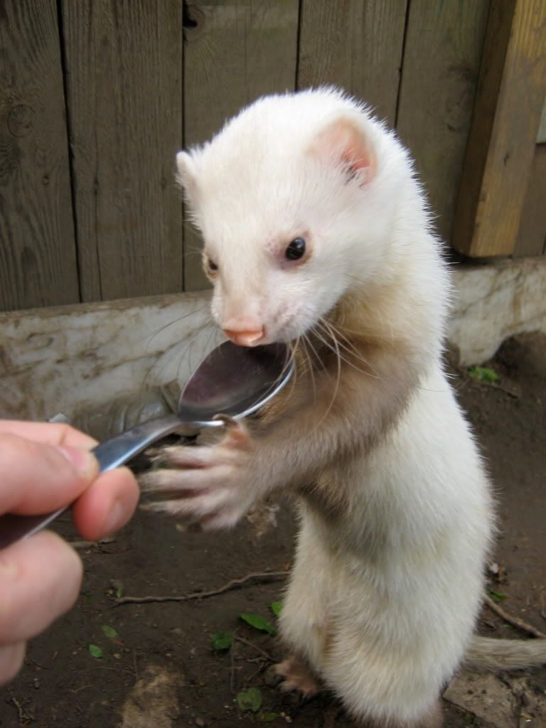 Charlie med sin helt egen ske. Der bliver holdt Godt fast! 8)