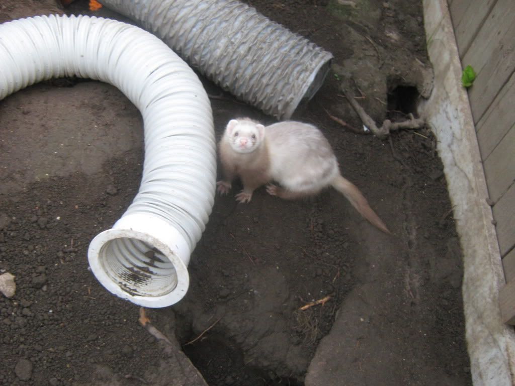 Det er nok ikke så smart, hvis hun kan komme udenfor nu, tænk hvis hun fødte udenfor, evt i et af rørene, eller rundt omkring.