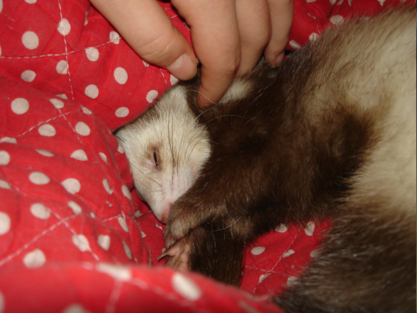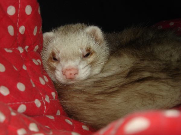 Hector i en seng fyldt med halvdelen af Ceruleans pels