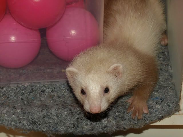 Meep er en rigtig sød og dejlig ilder, som dog har ufatteligt meget krudt i røven. Hun er opvokset hos en jæger i Holland og har derfor ikke haft den samme menneskekontakt som mange hvalpe ellers har. Hun er dog meget sød alligevel og vil heldigvis ikke bide. Hun kan finde på at nappe, men det er enten som en refleks eller i leg, hun bider aldrig nogensinde igennem, og hun bider ikke med vilje hvis hun lige er klar over hvad der sker.