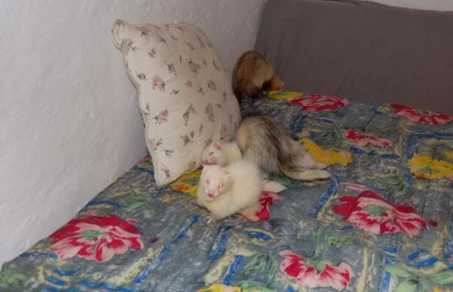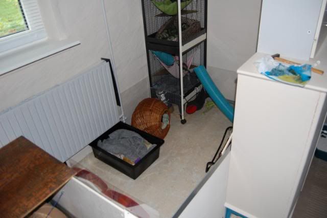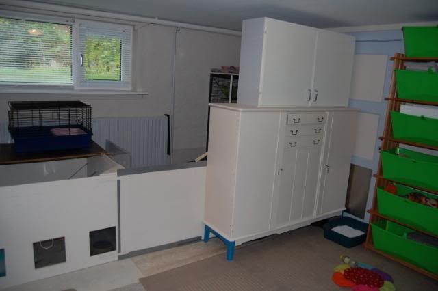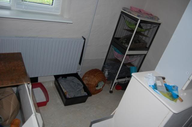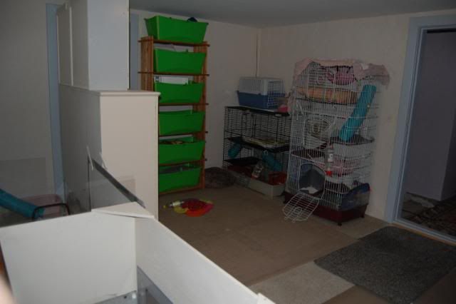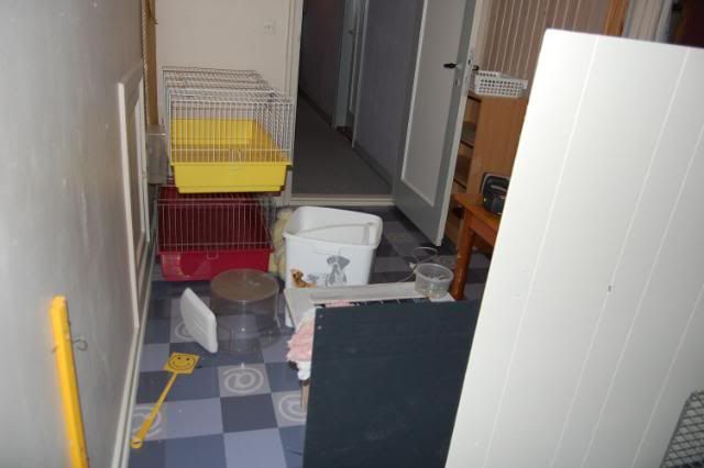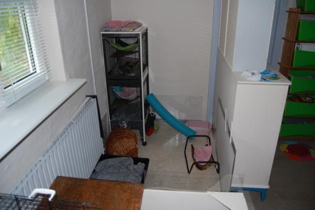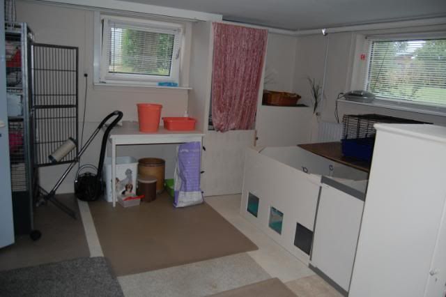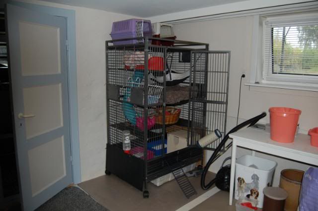 Og til sidst dyrenes helt eget rum (de 2 af burene står faktisk tomme,fordi drengene er ude af brunst...og et af dem er bare gæstebur eller hvis man ikke lige kan enes)