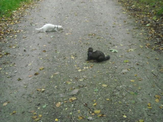 Vi besluttede at på trods af stormvejret og lidt regn i ny og næ, så ville vi en tur i skoven med ilderne :)