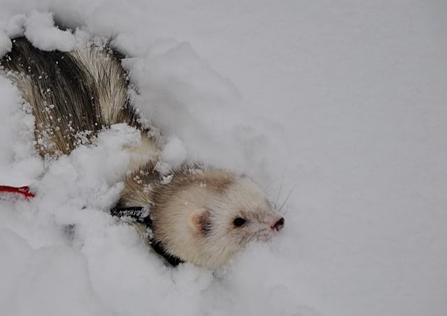 Micko derimod elsker sne. Han kunne slet ikke stoppe, da han først fandt ud af man kunne grave og lege i det.