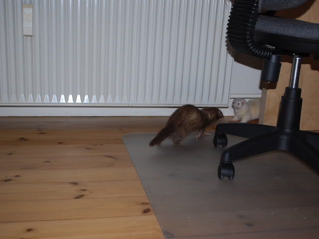 Dog fik jeg lige et stik i hjertet da jeg så det billede nr 3 hvor dine katte er under skrive bordet og kigger på ilderne.