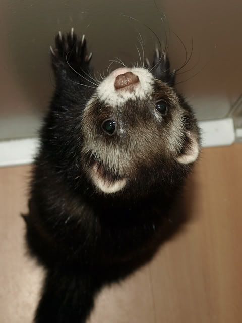 Her er lidt fra herhjemme. Det er fra vores soveærelse, hvor vi har dyrene inde om aftenen, da vores stue endnu ikke er færdig til at de kan rende frit der (og vi i øvrigt heller ikke selv gider sidde og kukkelure inde i stuen midt i alle papkasserne). Billederne er måske lidt kedelige med gulvets farve og ilderne, men sådan er det. I det mindste har jeg fået strøm på mit kamera igen :D