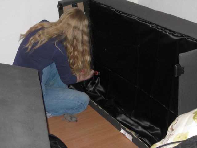 Jeg beklæder sofaen med bævernylon.. fordi den aftenen før havde været fuld af ildere, og det synes jeg ikke var så godt!