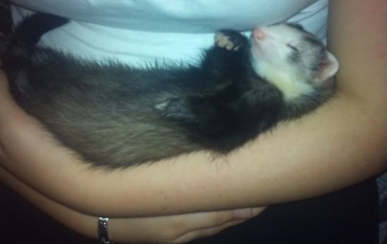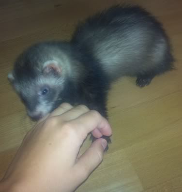 Hehe :) Han er i hvert fald en perfekt ilder.. virkelig skøn.. elsker at blive nusset og putte og få opmærksomhed og hverken bider eller noget.. og en rigtig charmetrold og fjolle gøj, han er bare fantastisk