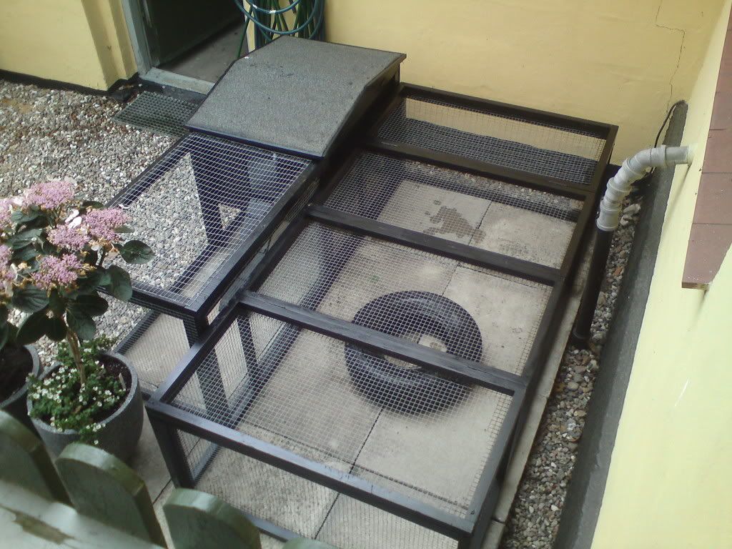 Julie Stuhr: jeg har faktisk bare købt det i Jem og Fix  :-$ Det er 2 forskellige bure jeg har købet dem hver for sig, og så har mig og min kæreste ilder sikret det og sæt net op forskellige steder og taget net ned igen andre steder for de ikk skal løbe ud  og for de 2 bure kunne sættes sammen til 1 stort :D