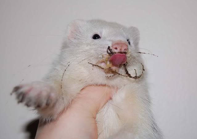 Jeg har så måttet vaske hans mund/pels med tandbørste for få det af, men nyd billederne :lol: :lol: