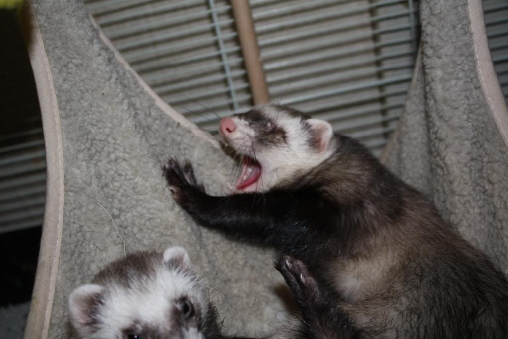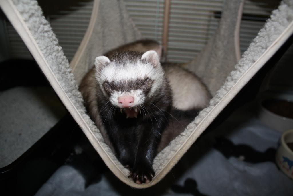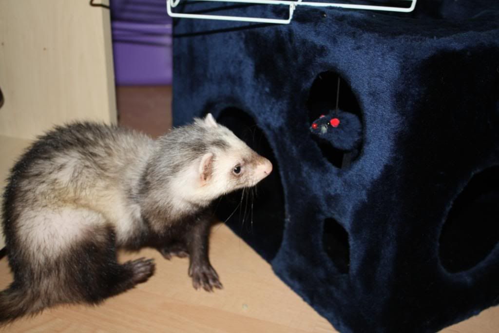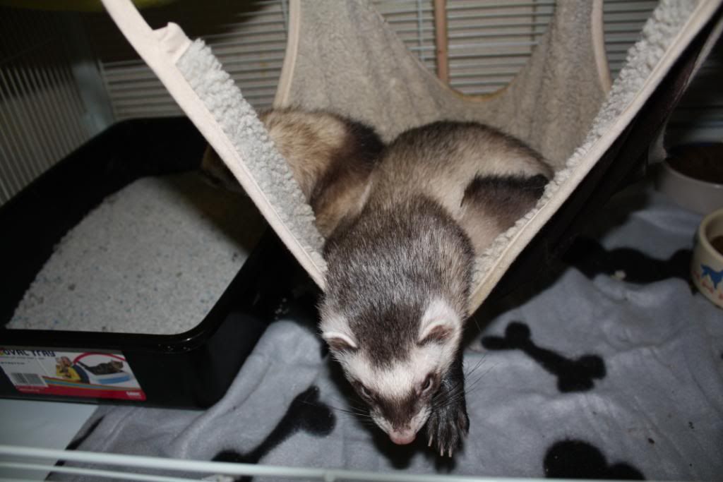 Tak :) Jeg tror ikke han brokker sig :) Han har haft noget stereo typ adfærd ved tidligere ejer tror jeg. For når jeg sætter ham ind i buret mens jeg rydder op og støvsuger så render han uafbrudt frem og tilbage det samme sted i buret :( Er glad for jeg købte ham han er en helt fantastisk ilder ikke en eneste gang har han bidt eller lavet ballade :) Udover at stjæle en tandbørste og have et par uheld :) Men så fik han da selv børstet tænder ;)