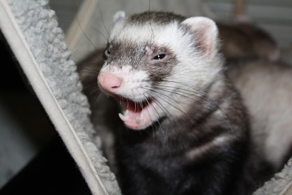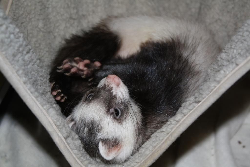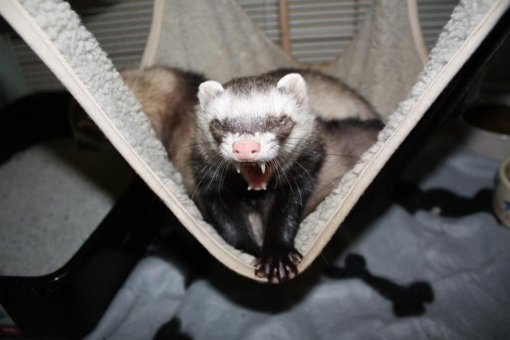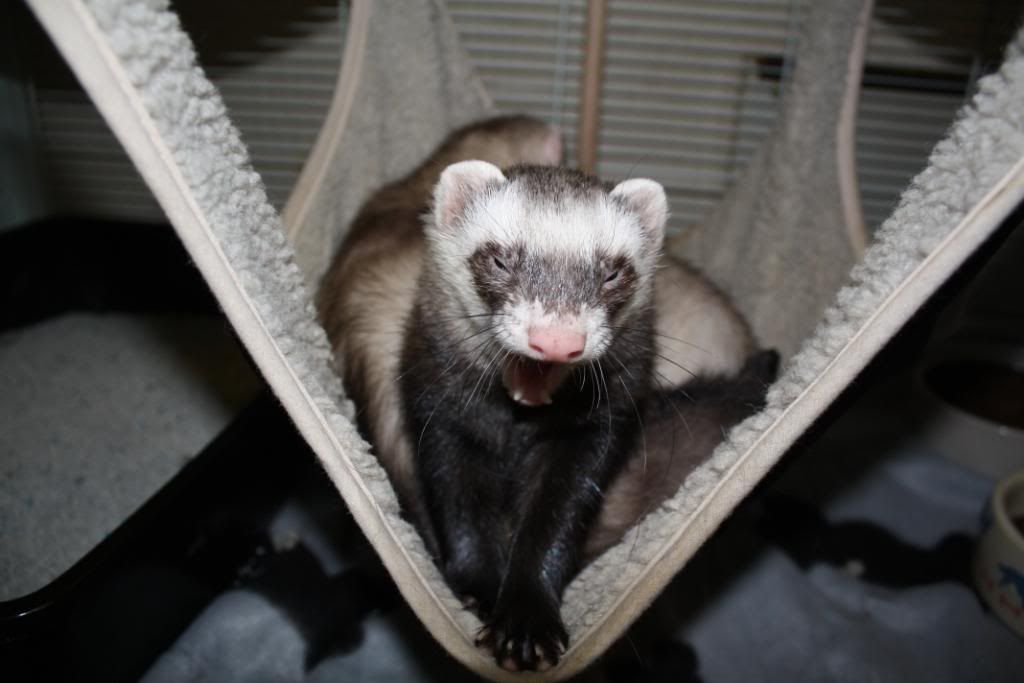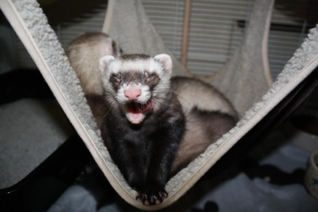 Tak :) Jeg tror ikke han brokker sig :) Han har haft noget stereo typ adfærd ved tidligere ejer tror jeg. For når jeg sætter ham ind i buret mens jeg rydder op og støvsuger så render han uafbrudt frem og tilbage det samme sted i buret :( Er glad for jeg købte ham han er en helt fantastisk ilder ikke en eneste gang har han bidt eller lavet ballade :) Udover at stjæle en tandbørste og have et par uheld :) Men så fik han da selv børstet tænder ;)
