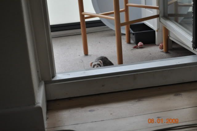 Spero hygger sig i rørene på altanen