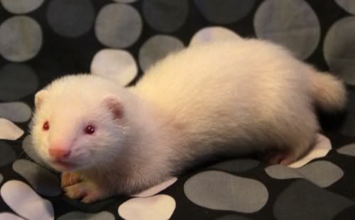 På torsdag tager jeg til Finland og henter denne lille skønhed - Nightshade Ferrets Titanium. Jeg glæder mig rigtig meget til at hilse på hende, se hende med egne øjne og lære hende at kende  :) Hun får et andet kaldenavn herhjemme. Jeg har et par på tapetet, men jeg vil lige møde hende, inden jeg lægger mig helt fast på et navn.