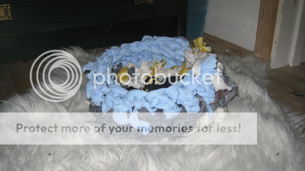 Den er ikke specielt vakker, men tror ikke dyr bryr sig så særlig :) Gamle jeans, t-shirts og kjoler blir seng til noen andre. Genbrug  <3
