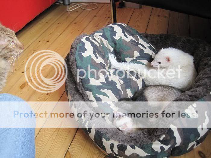 Karin: Det billede er lidt misvisende, hehe. Felix sovnet og vi la Zallie ved siden af ham :P men det var så herlig å se ham sammen med en anden ilder altså <3