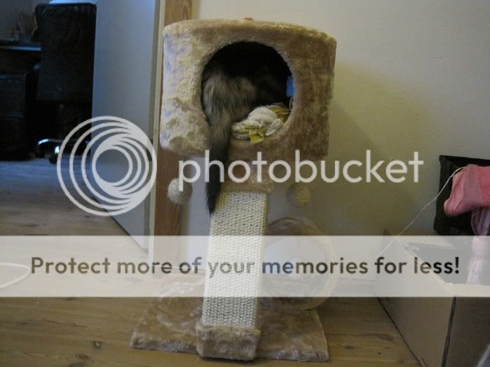 Jeg sto å hadde en monolog med mig selv inde på Lidl, for Felix HAR jo mange ting...men han har ikke et kattetræ :P hvilken som helst forkælet ilder bør jo ha det!