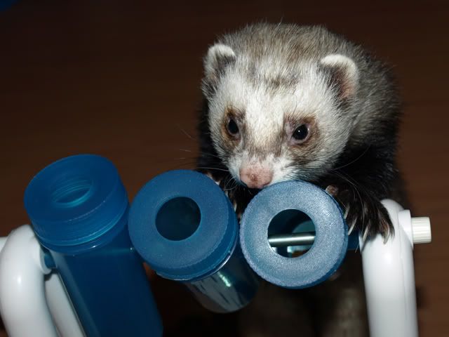 Christel: Har du prøvet med nogle dejligt duftende (for en ilder) godbider og så ladet dem lugte ned i hullet til "røret"? Jeg skulle lige vise dem at der var mad i og så gik det fint.
