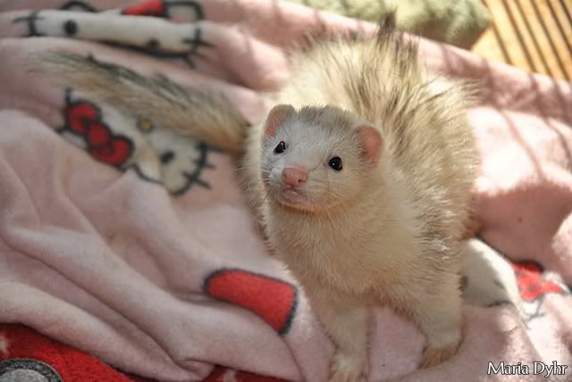 ja, det var bare super hyggeligt :) Irish ligner en fedtet langhåret rotte pt, så han er ikke den kønneste at tage billeder af :lol: meeen, når implantatet engang begynder og virke skulle han gerne blive lækker og fluffy igen :fnis: ja, Fenris er pastel, og en rigtig lille køn en af slagsen, planen er at han skal kastreres nu her, han er en brunstig lille rod for tiden, dog knap så fedtet og stinkende som rotte-ilderen Irish ;) lidt pinligt, men troede faktisk Loke var var standart lige indtil Maria kom og fortalte at han var en yndig lille silver  :fnis: