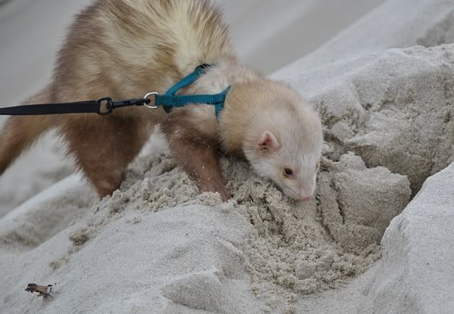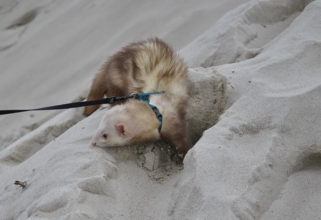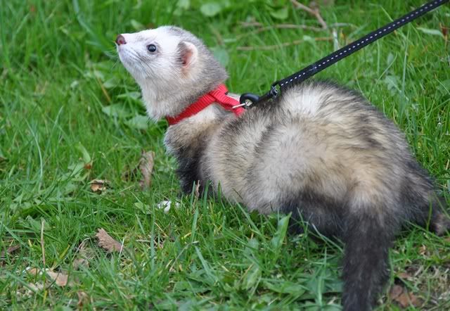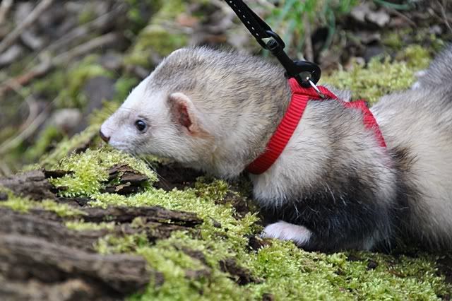 Et af turens højtepunkter for mig var da vi skulle have Fenris ude og gå tur. Han har højst sandsynligt aldrig prøvet at gå tur før, så Christina ville gerne have min hjælp med at få en sele på ham og gå en tur. Det blev et syn for guder!! Jeg har sjællendt set en ilder nyde naturen så meget. Han tonsede rundt, undersøgte alt og hoppede og dansede. Kun ganske få gange har jeg set så meget lykke på en gang. Og Fenris strålede af det!