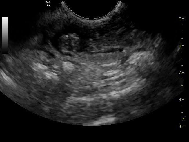 I dag ringede Marianne så at hun tog til Esbjerg og fik scannet Arya, jeg prøvede at nasse mig ind, men det gik ikke helt, og jeg skulle jo alligevel også lige lave rosetterne til naturhistorisk færdig og så må man jo bare vente... Men bedst som jeg så sad og lavede rosetter så fik jeg den mest fantastiske besked fra Dolly! Hun havde fået lov at låne scanneren på dyrehospitalet og spurgte om jeg kunen være der ved lukketid, så vi kunne kigge ind i Meep! prøv lige at gætte hvem der pludselig var smil op til begge ører og dansede rundt! Jeg havde jo netop fortalt hende i går hvor meget jeg ønskede mig en scanning, men hellere ville gemme pengene til dyrlægeregninger!